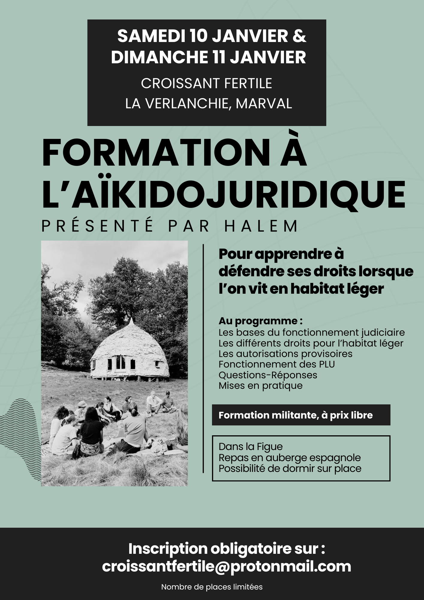 L’aïkido juridique est une approche militante du droit développée par HALEM - France pour permettre aux personnes vivant en habitat léger, mobile ou démontable de se défendre face aux administrations, aux élus ou aux procédures judiciaires abusives.Il s’inspire de l’aïkido martial : ne pas affronter frontalement, mais utiliser la force de l’adversaire, ses contradictions et […]